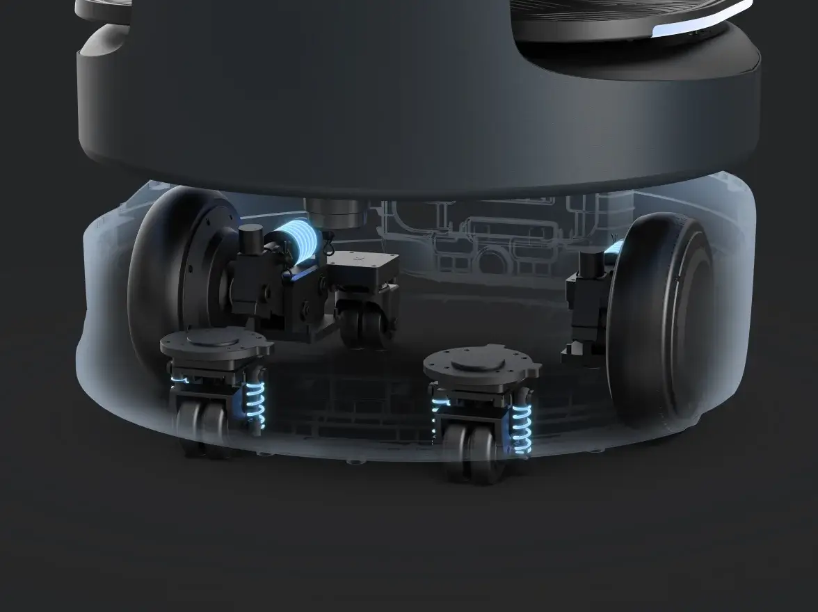 革命性的环境感知方案,搭载2个前视相机+3个RGBD+1个雷达实现底盘前检测全覆盖,遇障即停,自如转向前行