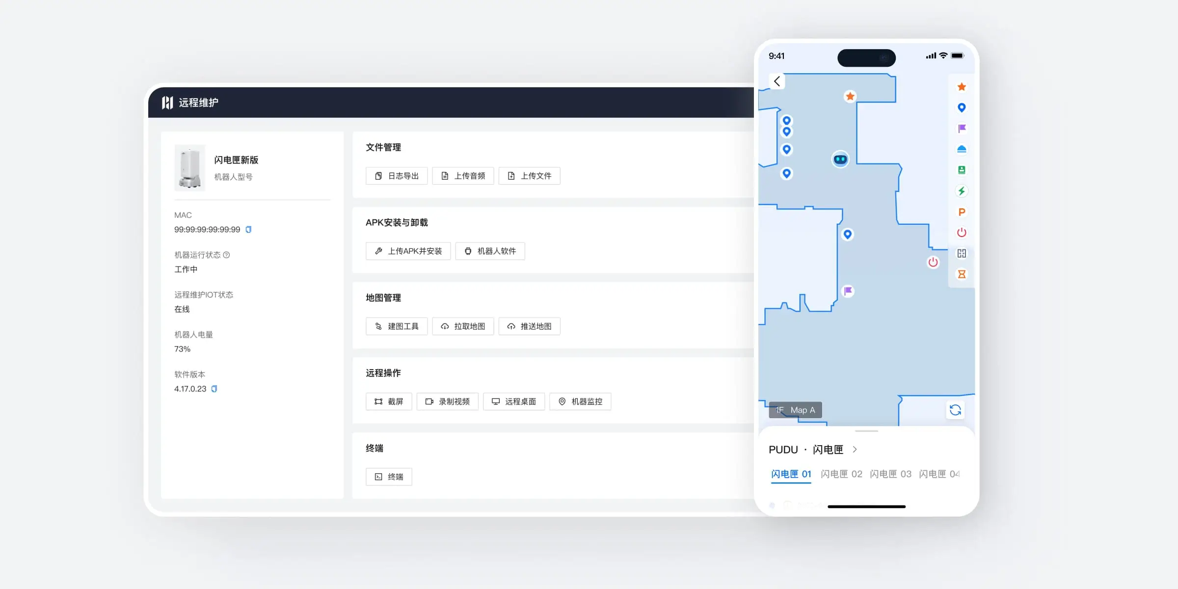 用户可通过 link App和远程运维平台实时掌握机器人位置及状态,远程部署运维方便清晰,运营数据一手掌握。