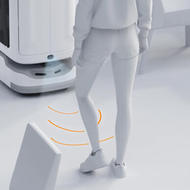 通过激光投影将机器人行走路径投影至地面,行人可轻松知晓机器人行走意图,从而快速选择最佳路径通过,让人机通行更顺畅。