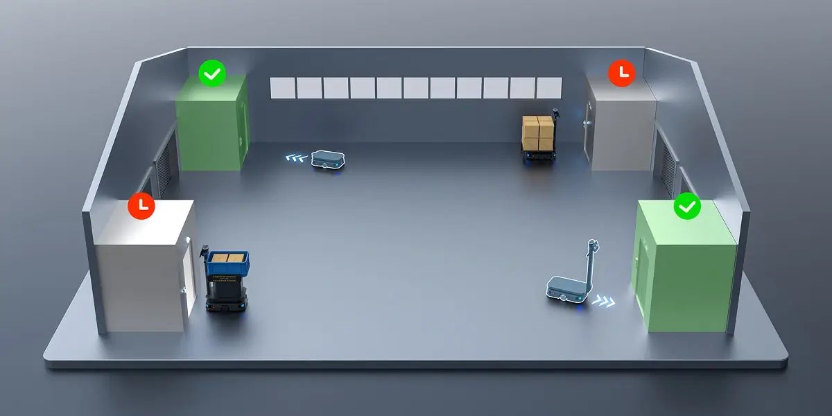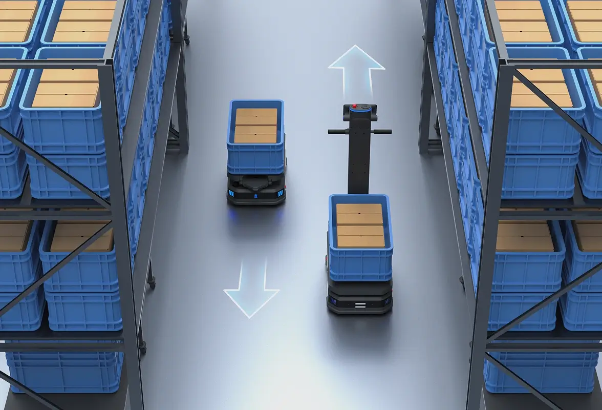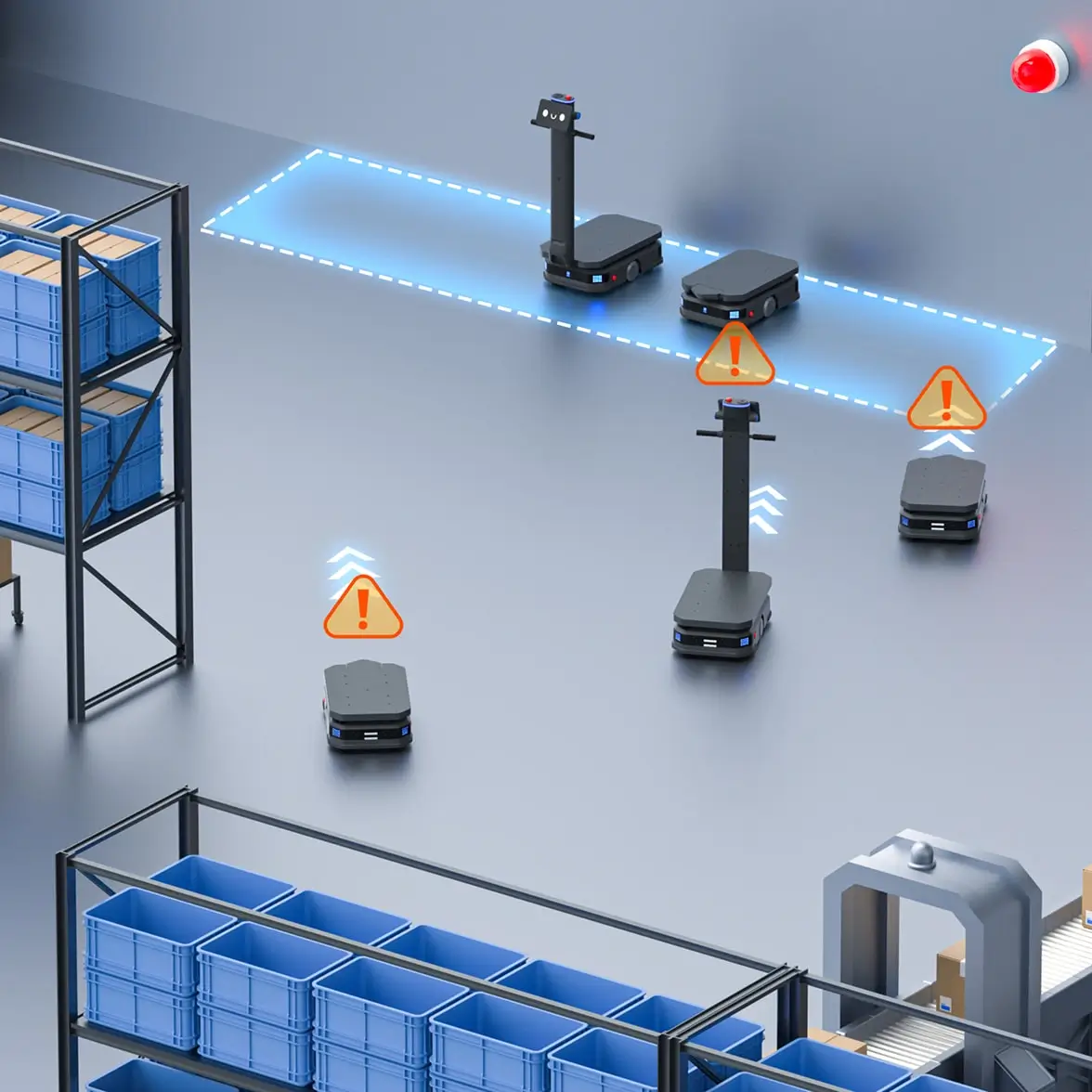 基于道路宽度和机器人实时负载尺寸,系统智能判断适用的单行或双行通行模式,并动态调整通行策略,有效提升狭窄空间的利用率和多机协同通行效率。