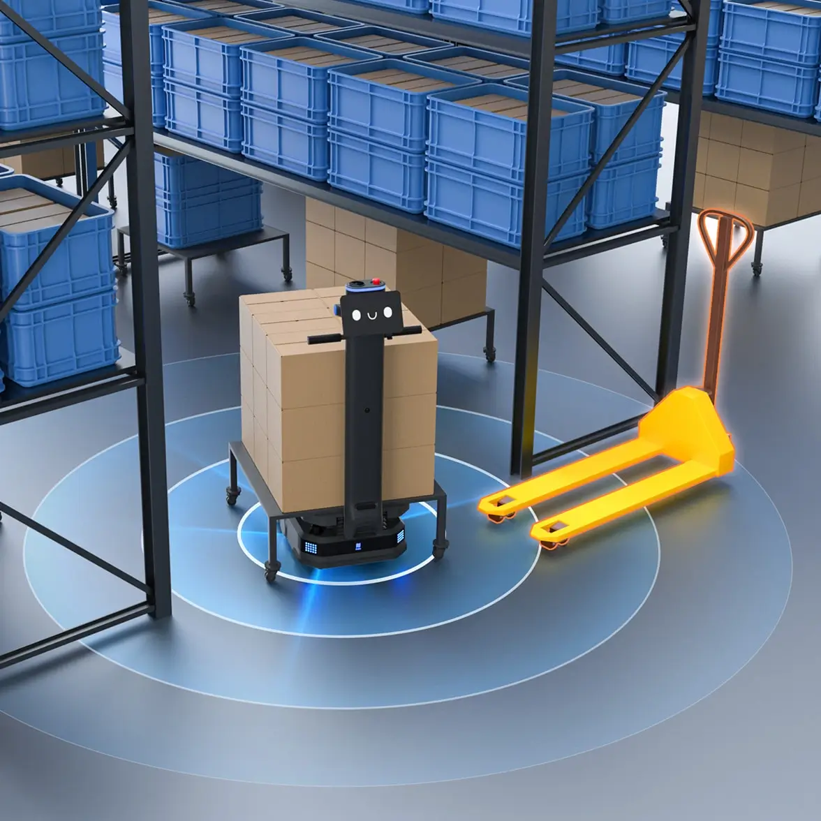 依托先进的导航与感知系统,T600系列可智能识别目标库位,并自主完成取货/放货操作,实现全流程无人化作业,保障仓储流程高效、稳定运行。
